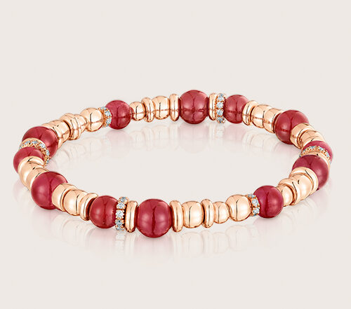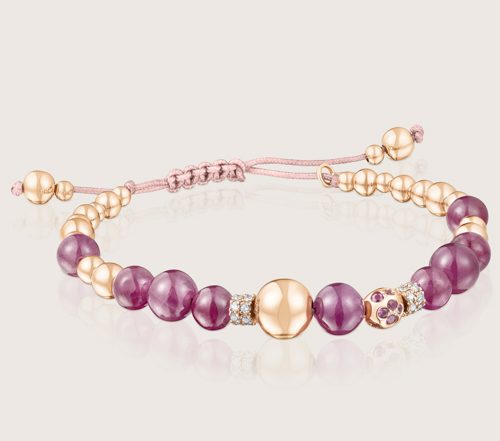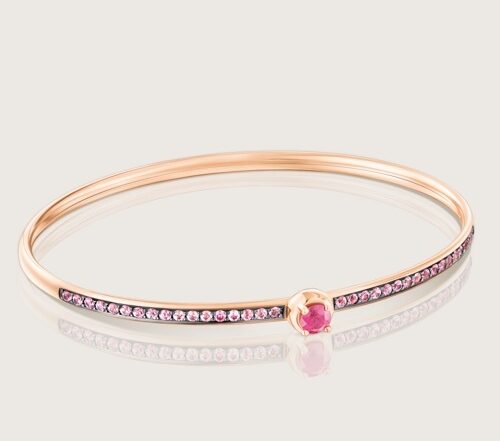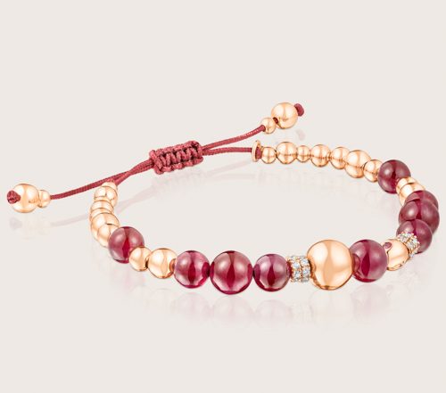 admin2024-05-07T11:21:12+00:00Perlenarmband aus 18 Karat Roségold und dunkelrosa Saphir mit