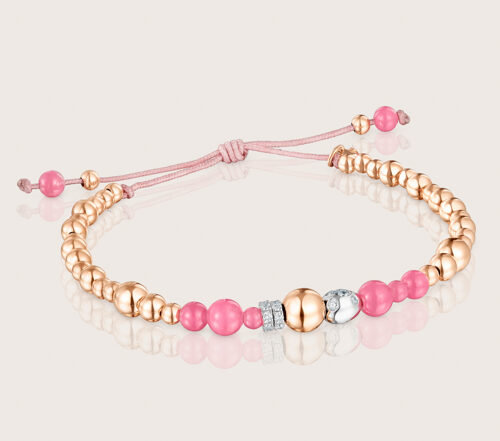 admin2024-05-07T11:06:18+00:00Perlenarmband aus 18kt Roségold und hellrosa Saphir mit weißen